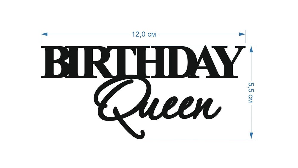 Акриловый топпер DZ боковая надпись Birthday Queen 2 золото