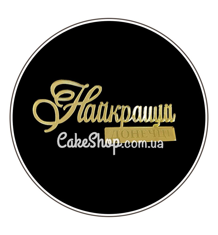 Цена на Акриловый топпер DZ боковая надпись Найкращій донечці, золото, 10 см равна 80 грн.