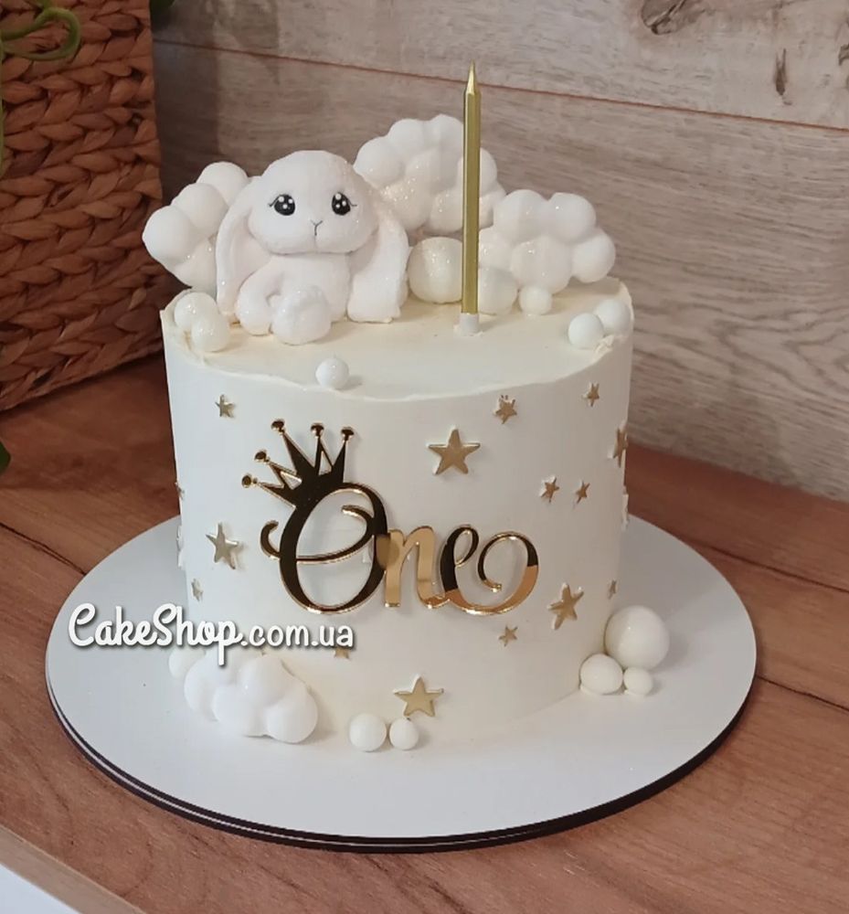 Цена на Акриловый топпер DZ боковая надпись One корона золото, 10 см равна 75 грн.