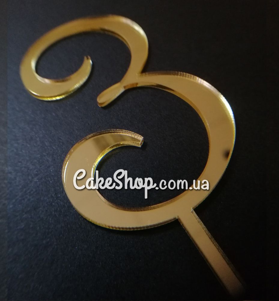 Цена на Акриловый топпер DZ Цифра 3 золото равна 50 грн.