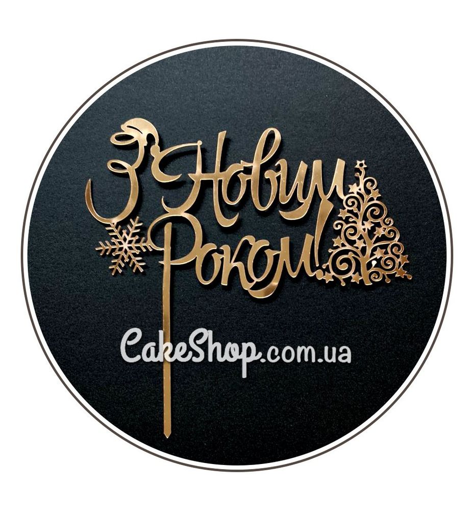 Зеркальный топпер DZ З Новим Роком! снежинка, золото