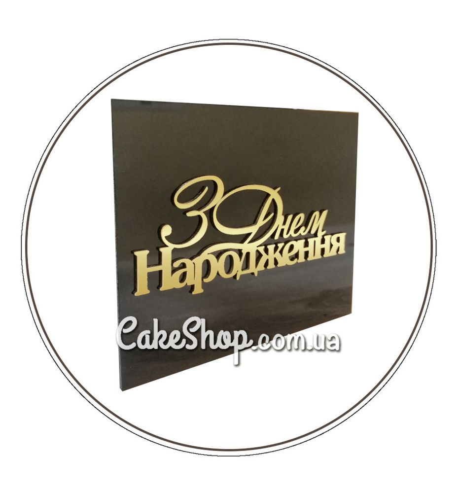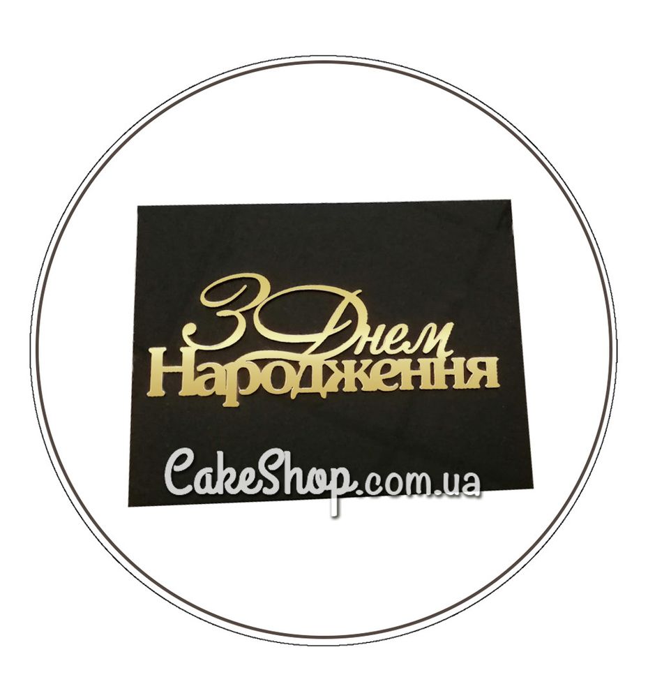 Цена на Акриловый топпер Lion боковой З Днем народження зеркальный черный/золото равна 80 грн.