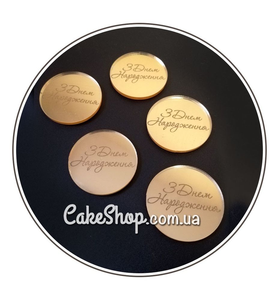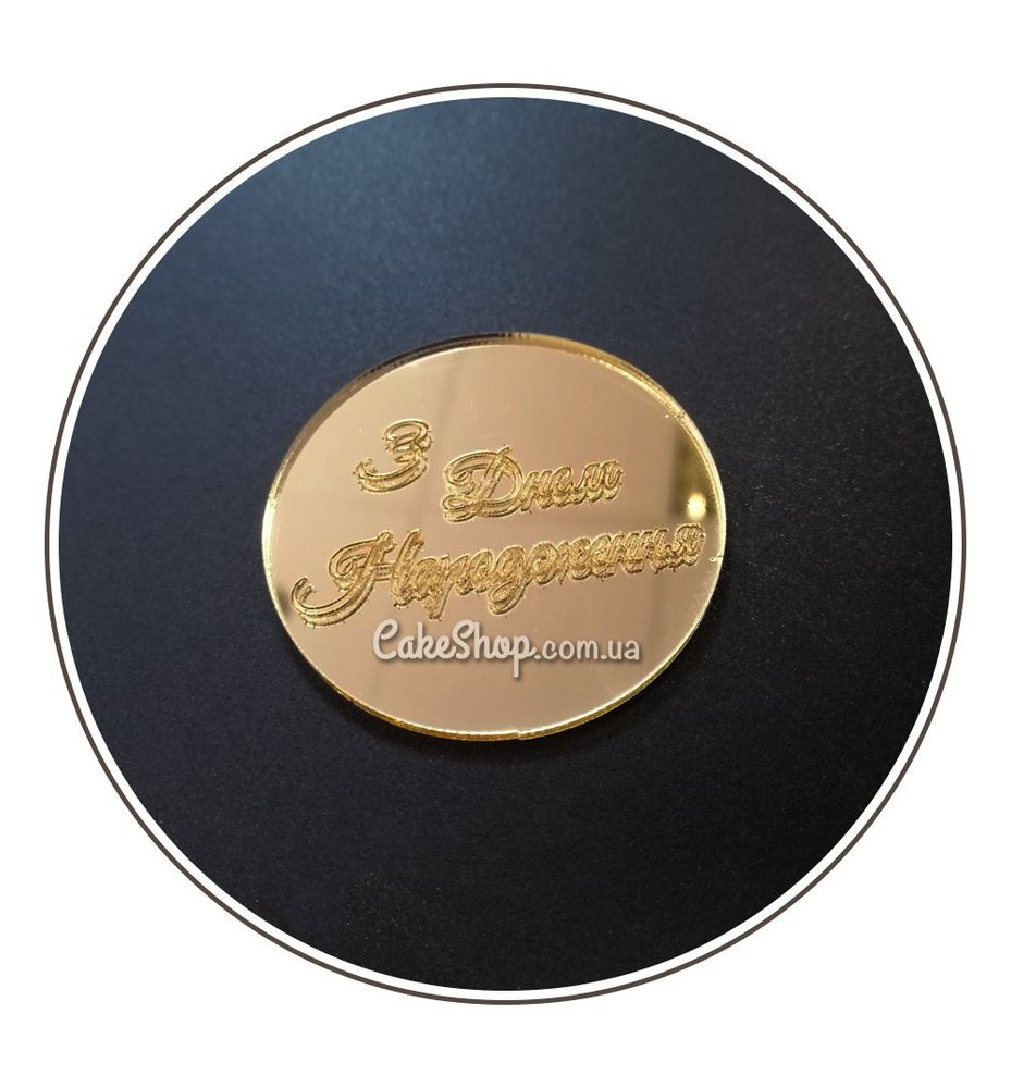 Цена на Акриловый топпер DZ медальон З Днем Народження 4,5 см золото равна 45 грн.