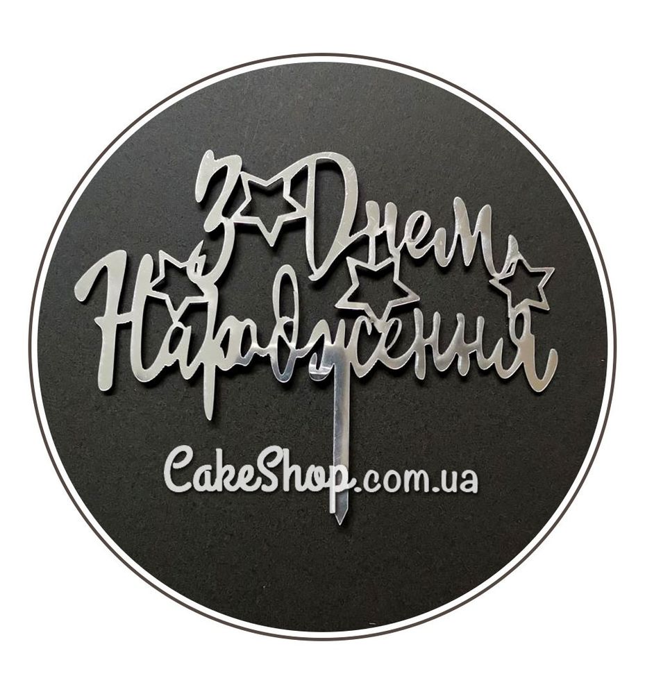 Цена на Зеркальный топпер DZ З ДНЕМ НАРОДЖЕННЯ серебро равна 65 грн.