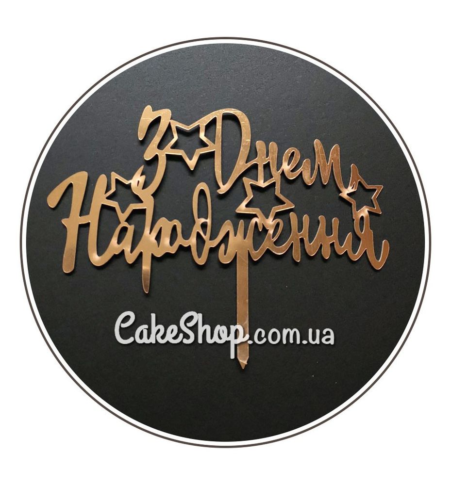 Цена на Зеркальный топпер DZ З ДНЕМ НАРОДЖЕННЯ золото равна 65 грн.