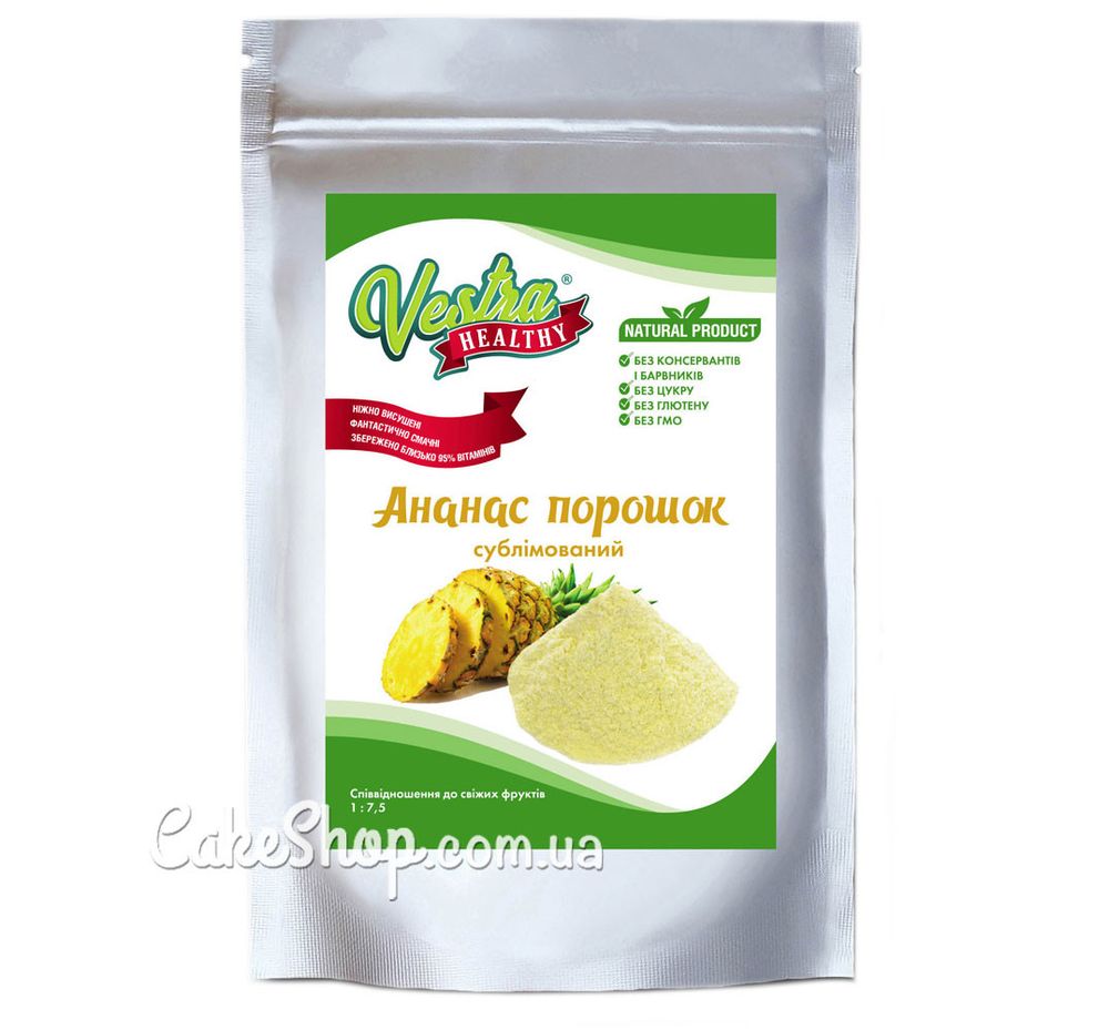 Цена на Ананас сублимированный порошок Vestra 0-1 мм, 50 г равна 135 грн.