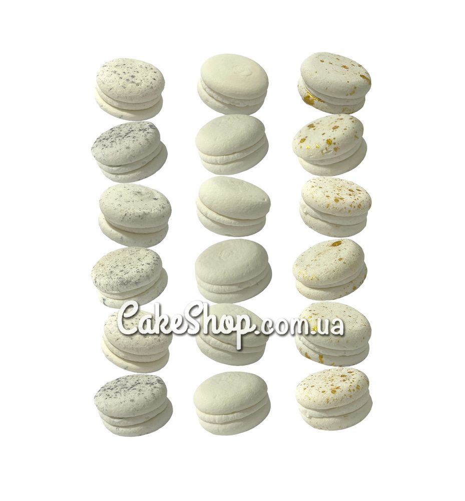 Безе набор Макаронсы мини белые, серебро, золото (6 шт) ТМ Ириска