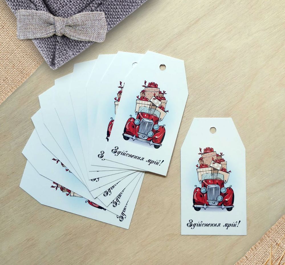Цена на Бирка бумажная Красная машинка 5х9 см, 10 шт равна 30 грн.