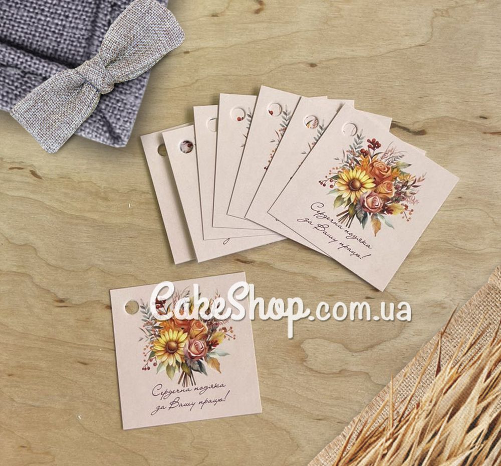 Цена на Бірка паперова Сердечна подяка 5х5 см, 10 шт равна 30 грн.