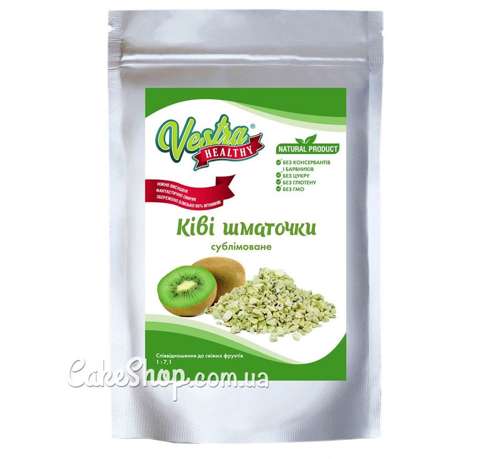 Цена на Киви сублимированные кусочки 2-5 мм Vestra, 20 г равна 105 грн.