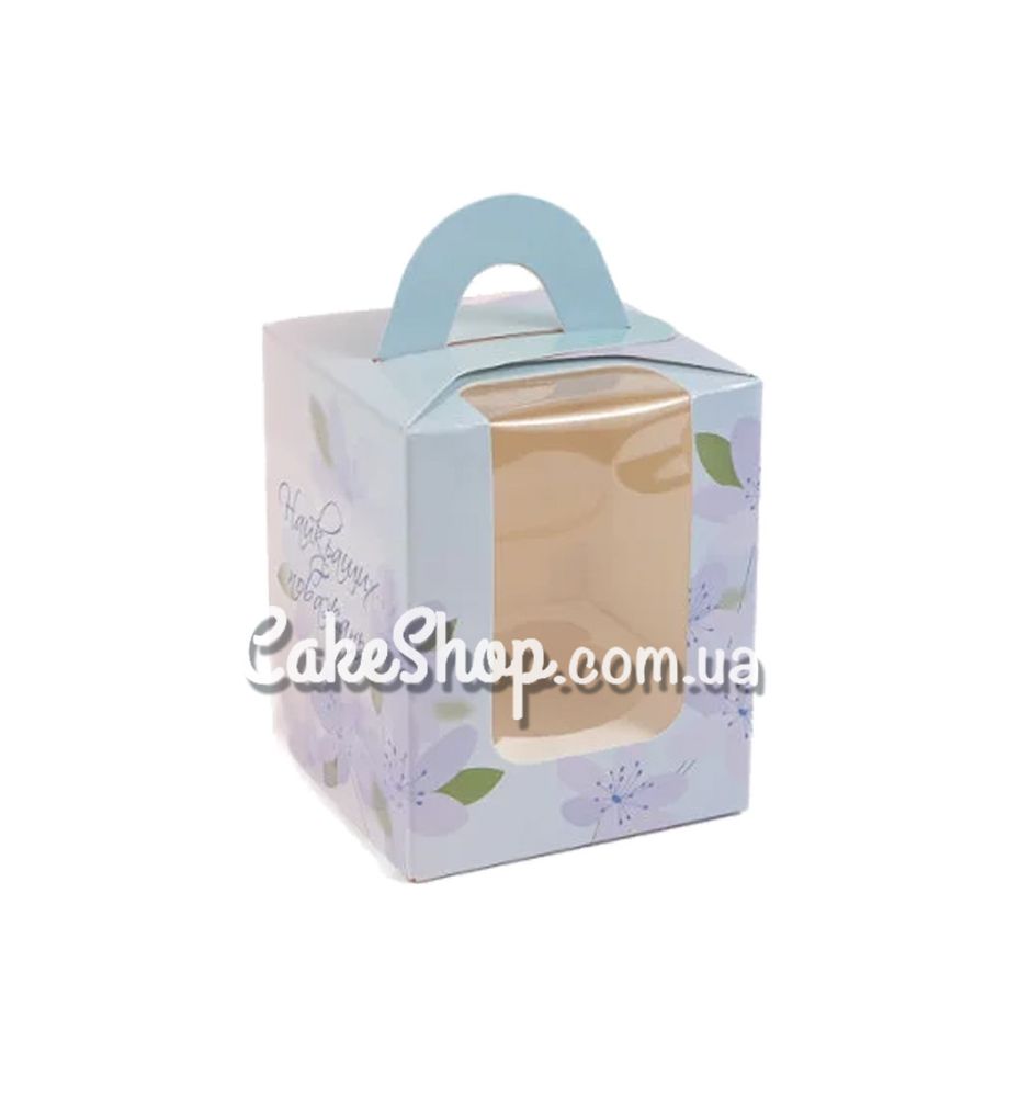 Цена на Коробка для 1 кекса с ручкой Цветочная нежность голубая, 8,2х8,2х10 см равна 12 грн.