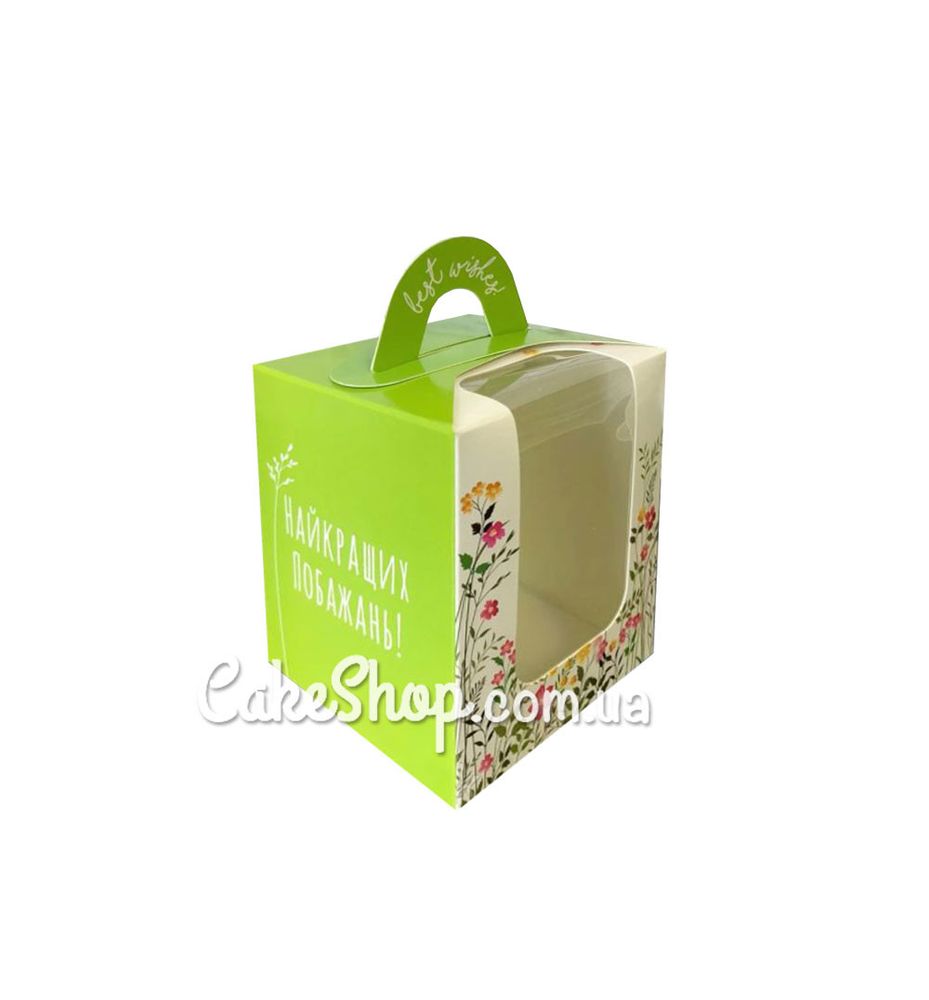 Цена на Коробка для 1 кекса с ручкой Зеленая, 8,2х8,2х10см равна 12 грн.