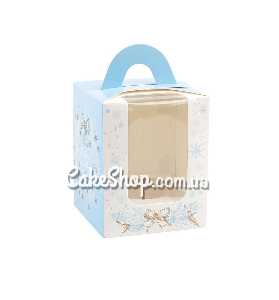 Цена на Коробка для 1 кексу з ручкою Новорічний виночок блакитна, 8,2 х8, 2х10 см равна 12 грн.
