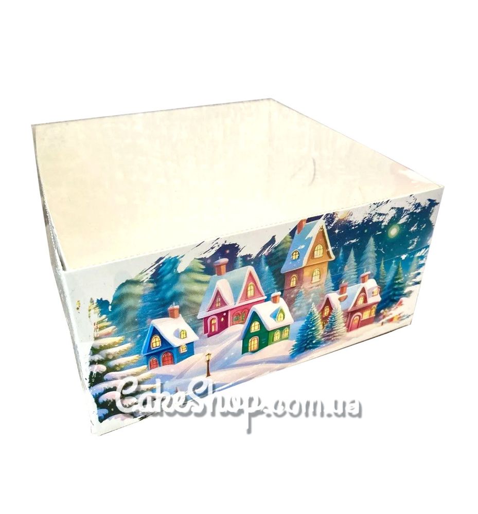 Цена на Коробка для десертов с прозрачной крышкой Домики, 16х16х8 см равна 22 грн.