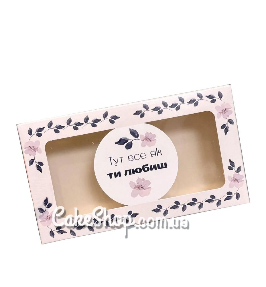 Цена на Коробка для эклеров, зефира с окном Здесь все как ты любишь серая, 20х11,5х5 см равна 18 грн.