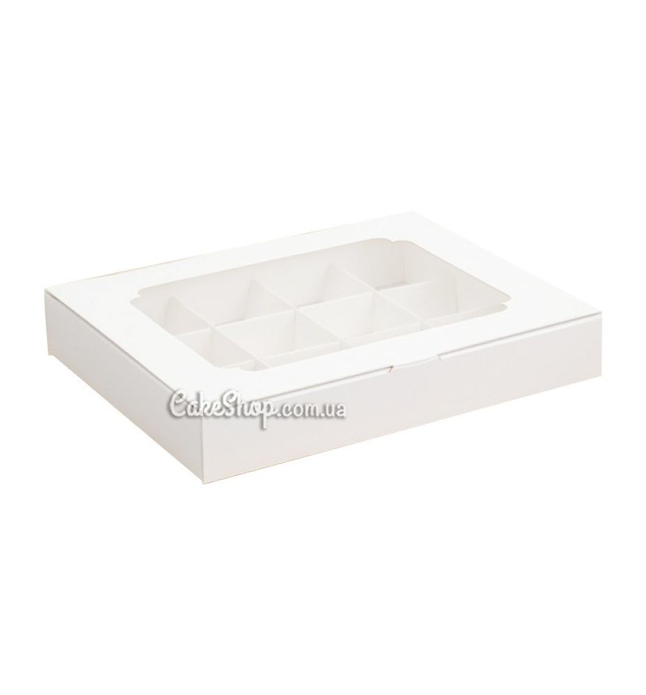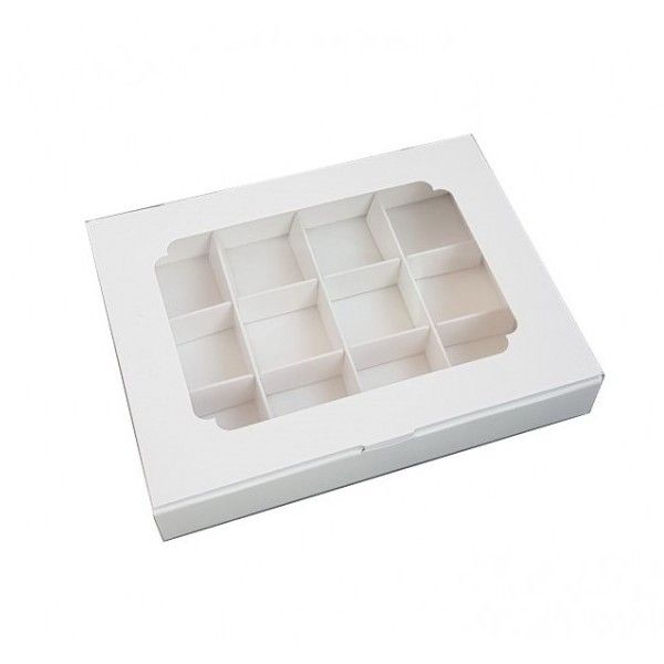 Цена на Коробка на 12 конфет с окном Белая, 20х15,6х 3 см равна 20 грн.