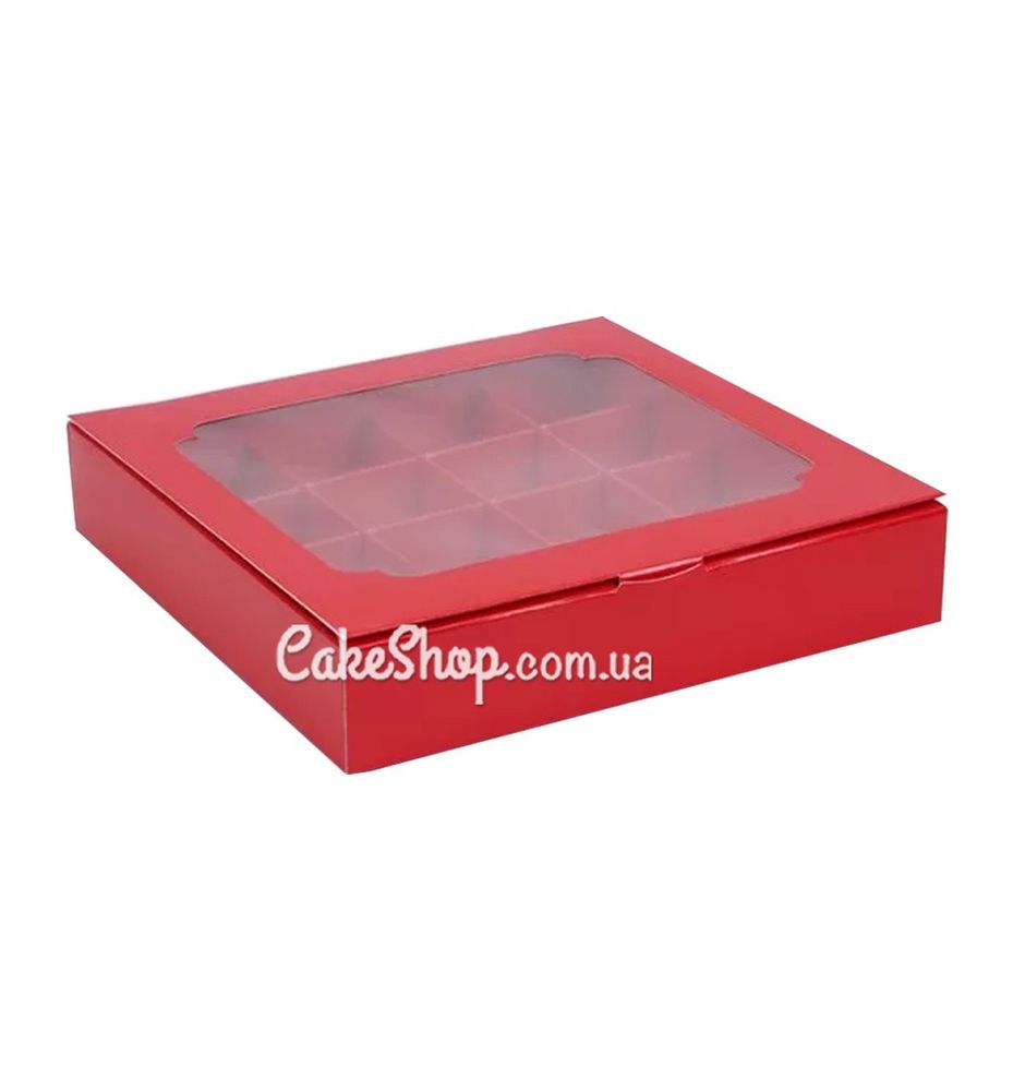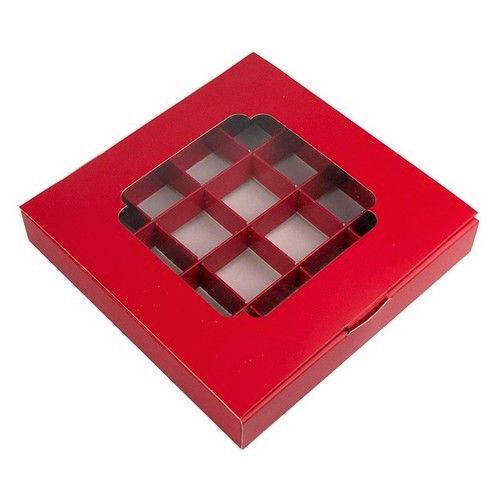 Коробка на 16 конфет с окном Красная, 18,5х18,5 х 3 см