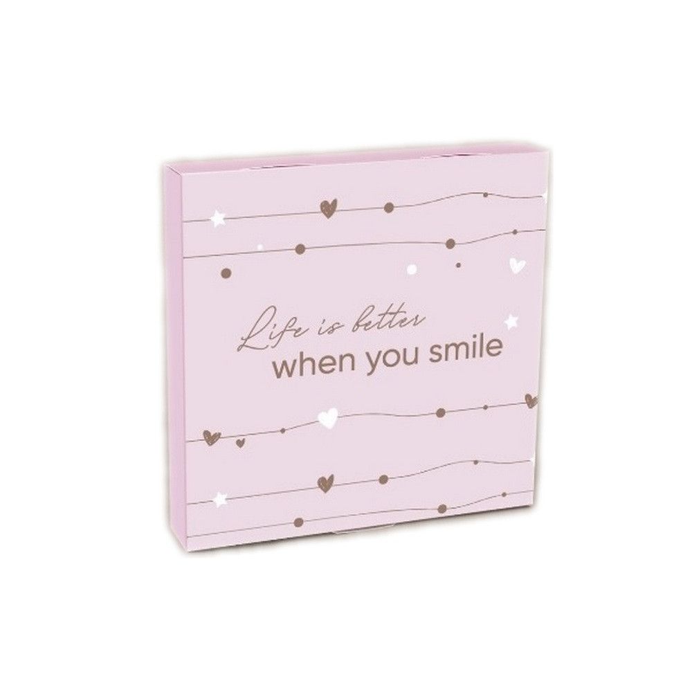 Коробка на 16 конфет без окна When you smile розовая , 18,5х18,5х3 см