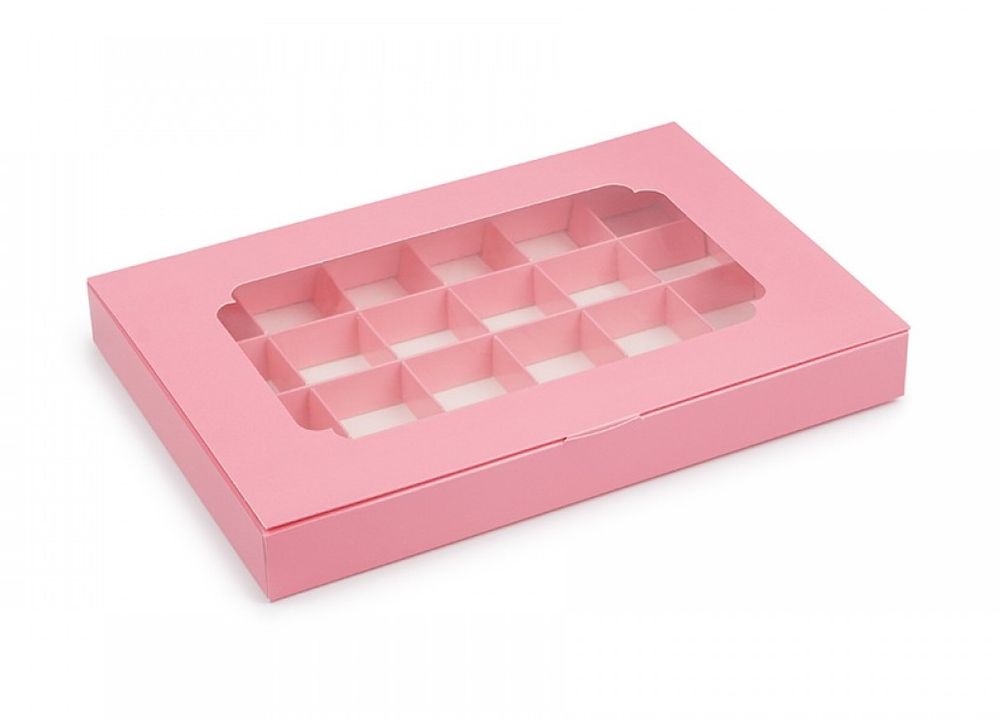 Коробка на 24 конфеты с окном Розовая, 27х18,5х3 см