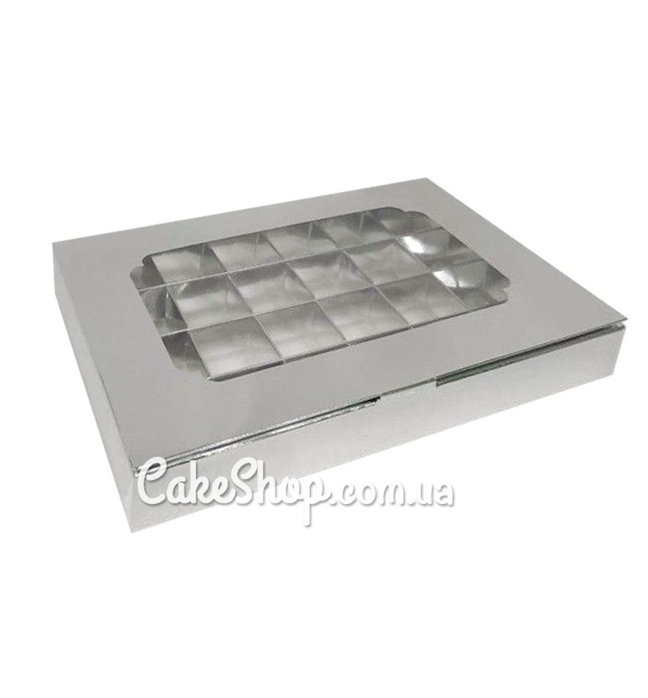 Коробка на 24 конфеты с окном Серебряная, 27х18,5х3 см