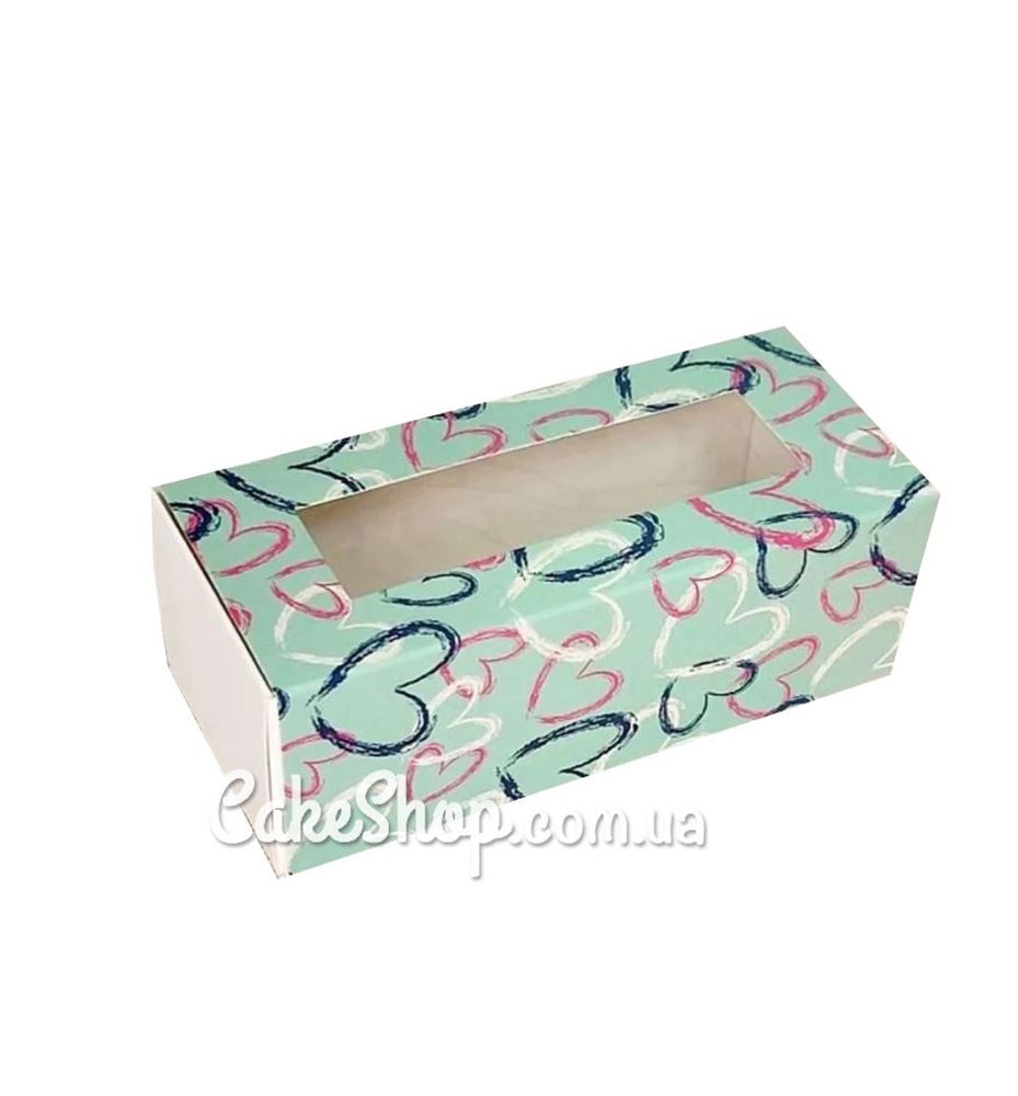 Цена на Коробка для макаронс, конфет, безе с прозрачным окном Сердца тиффани, 14х6х5 см равна 15 грн.