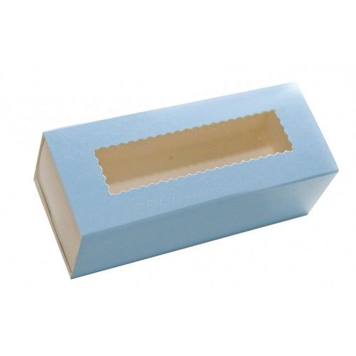 Цена на Коробка для макаронс, конфет, безе с прозрачным окном Голубая, 14х5х6 см равна 15 грн.