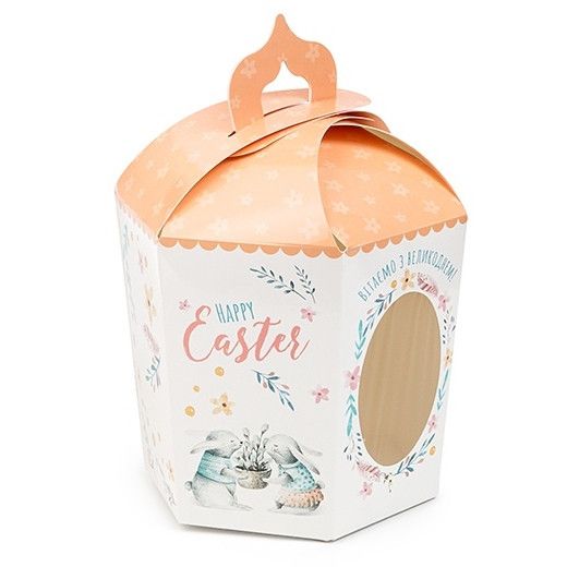 Цена на Коробка для пасхальных куличей 14,5х16,5х16 см, Заяц с вербой бежевая равна 28 грн.