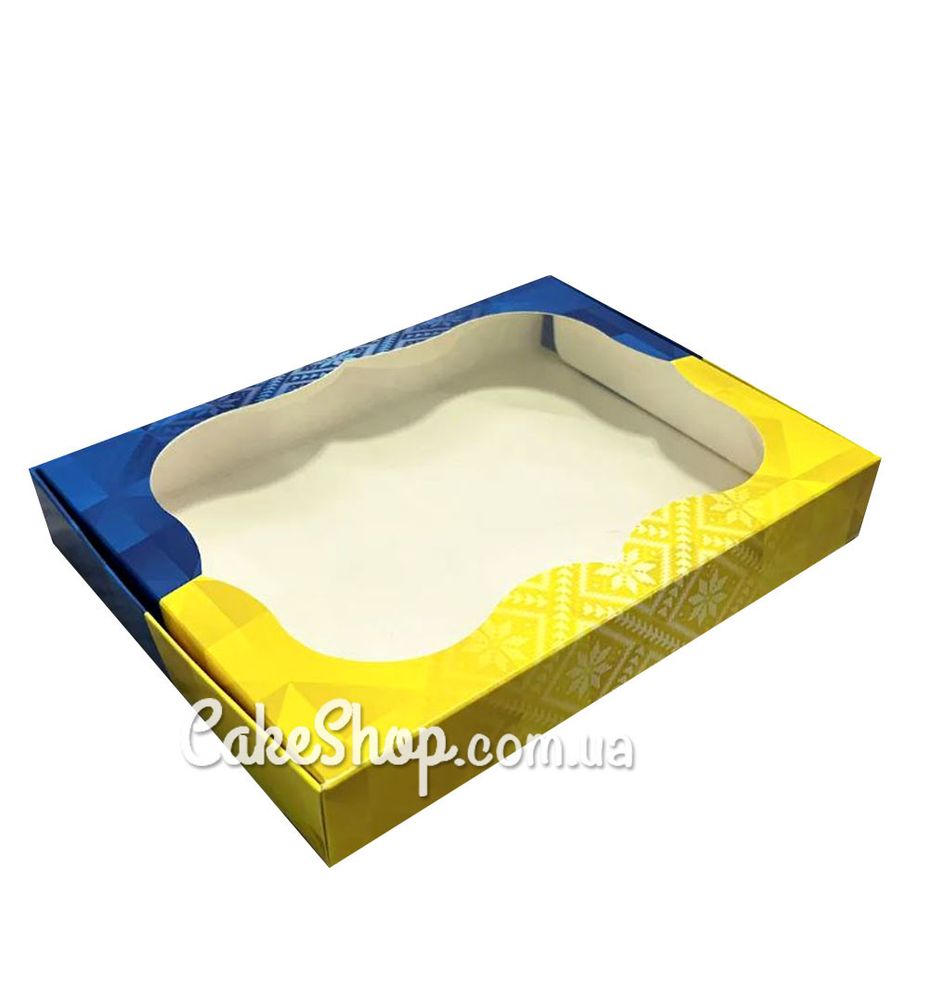 Цена на Коробка для пряников с фигурным окном Сине-желтая, 15х20х3 см равна 14 грн.