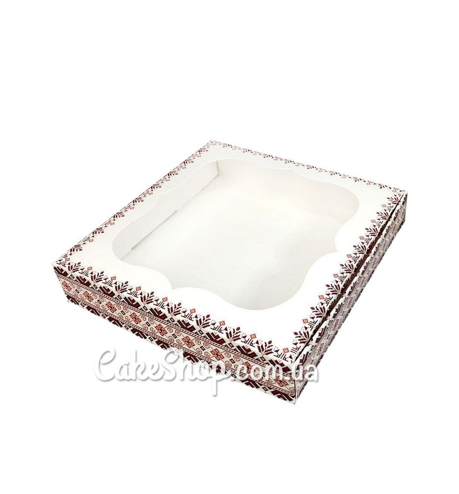 Цена на Коробка для пряников с фигурным окном Вышиванка, 15х15х3 см равна 12 грн.