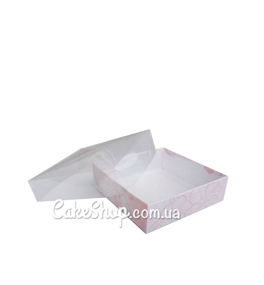 Цена на Коробка для пряников с прозрачной крышкой Пудра Узор , 12х12х3,5 см равна 18 грн.