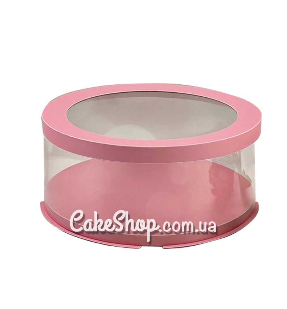 Цена на Коробка для торта, цветов, игрушек Тубус с прозрачной крышкой Розовый d-25, h-10 см равна 145 грн.