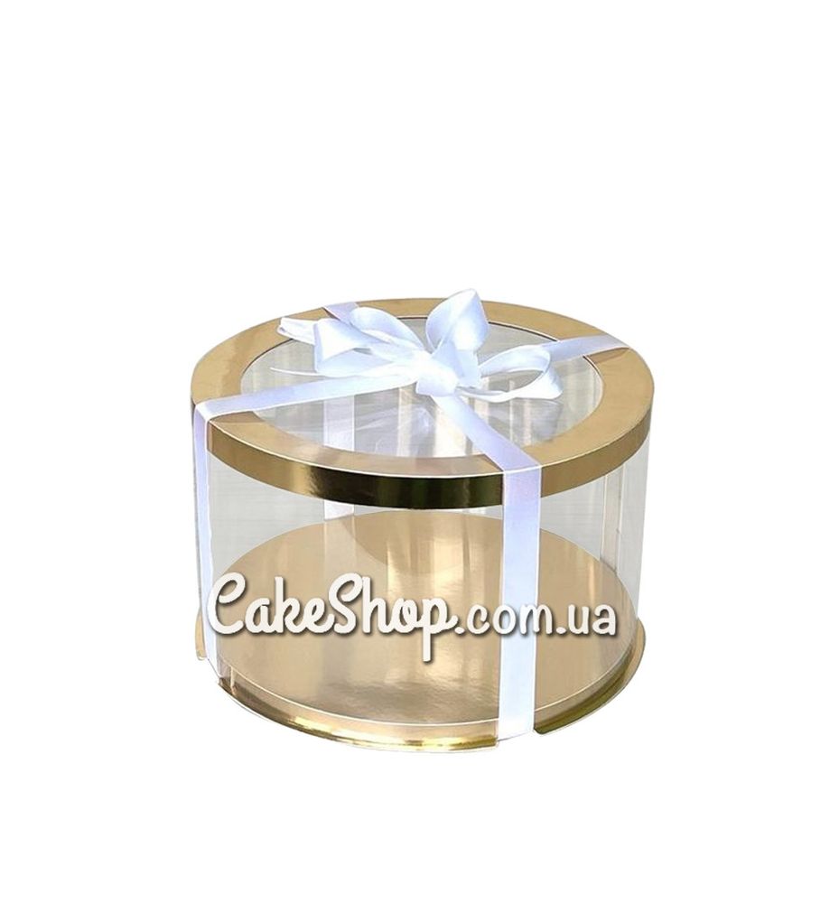 Цена на Коробка для торта, цветов, игрушек Тубус с прозрачной крышкой Золото d-25, h-15 см равна 135 грн.