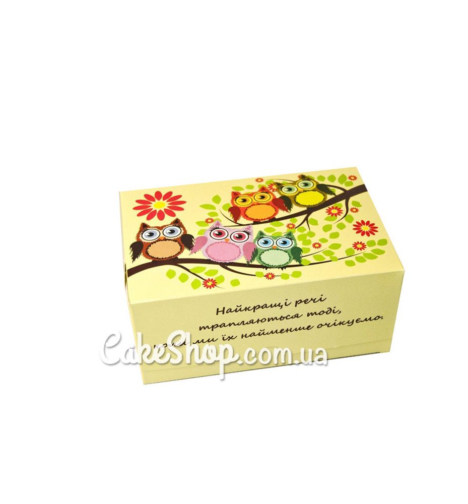 Цена на Коробка-контейнер для десертов Совушки лайм, 18х12х8 см равна 10 грн.