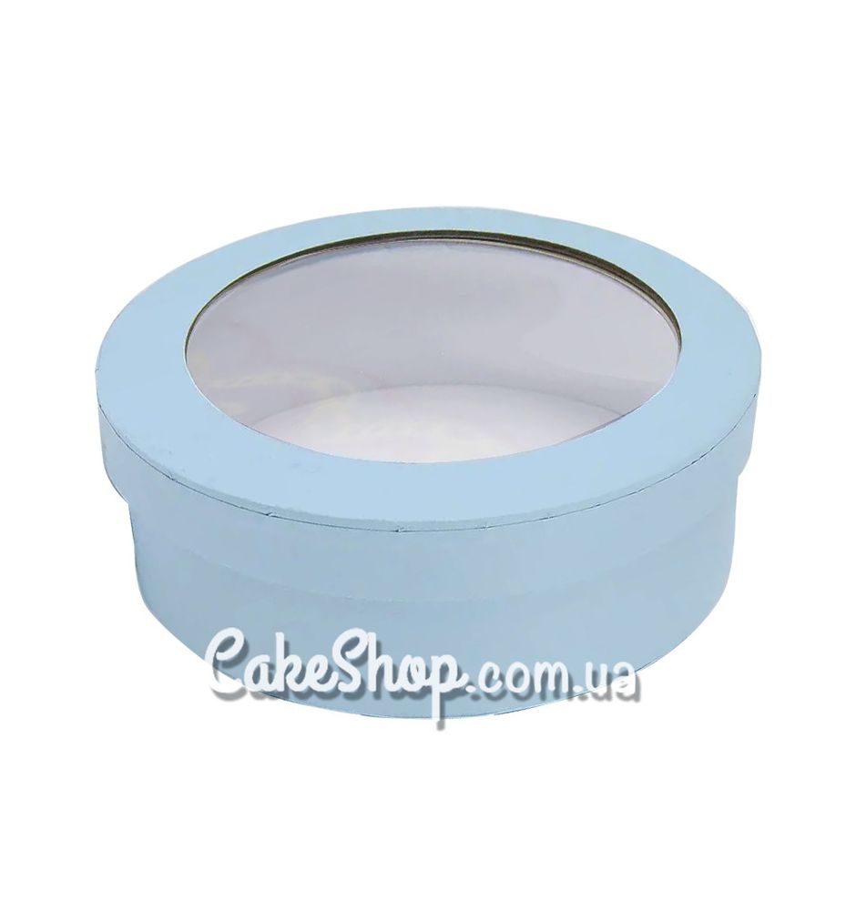Цена на Коробка круглая с окном d-22 см, h-6 см, Голубая равна 130 грн.