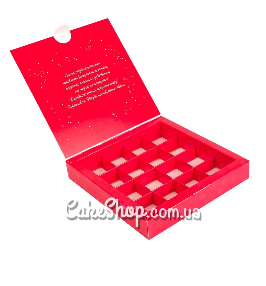 Цена на Коробка на 16 конфет без окна С Новым Годом красная, 18,5х18,5х3 см равна 30 грн.