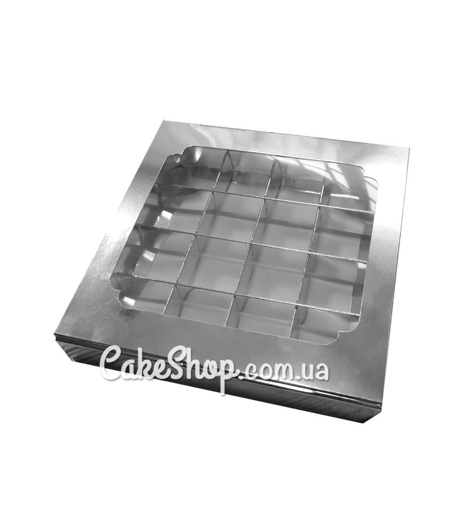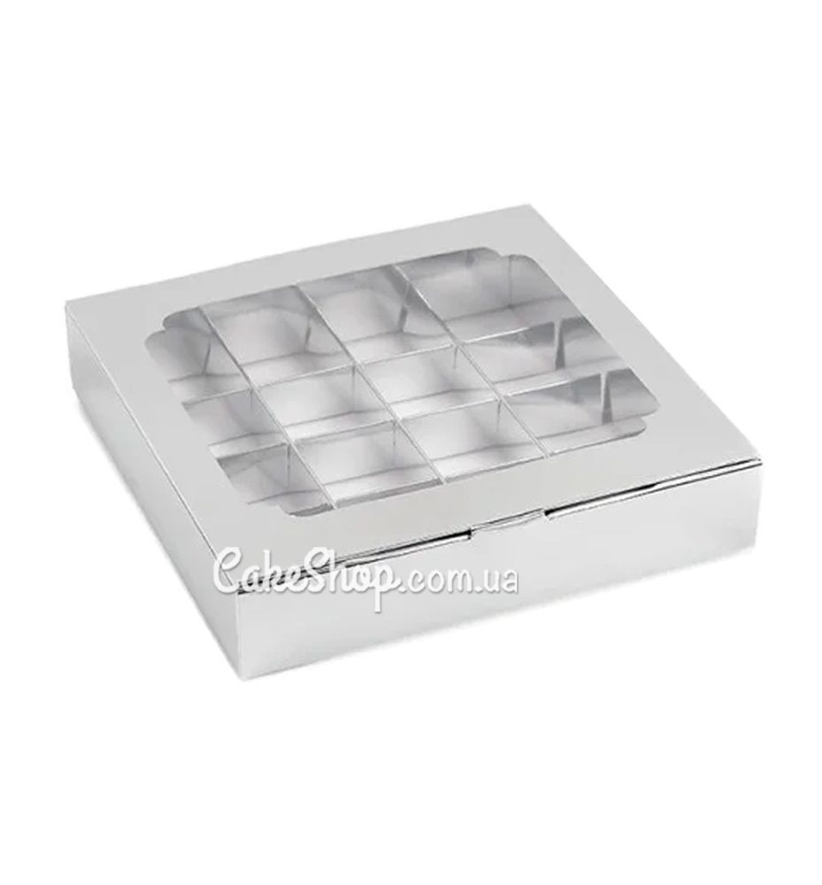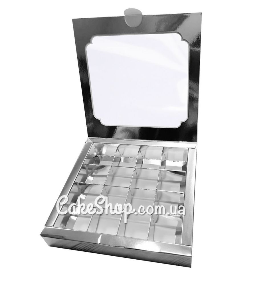 Цена на Коробка на 16 конфет с окном Серебро, 18,5х18,5х3 см равна 30 грн.