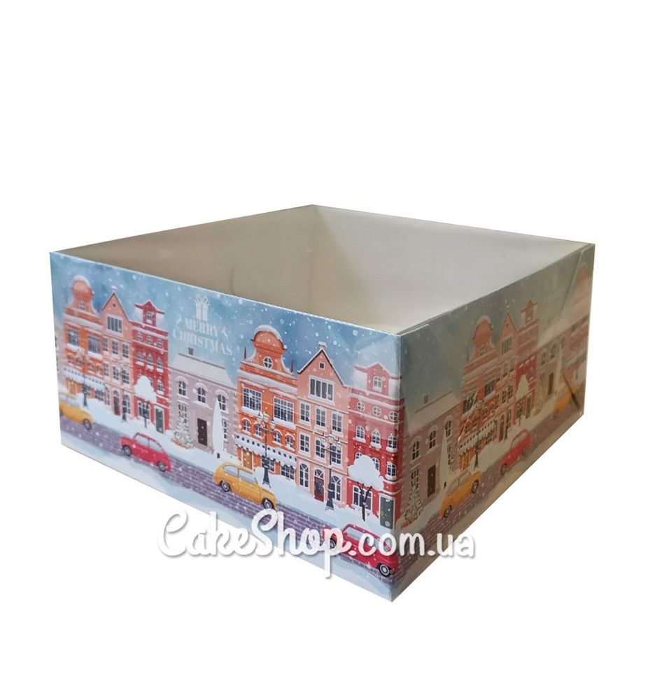 Цена на Коробка на 4 кекса с прозрачной крышкой Зимний город, 16х16х8 см равна 22 грн.