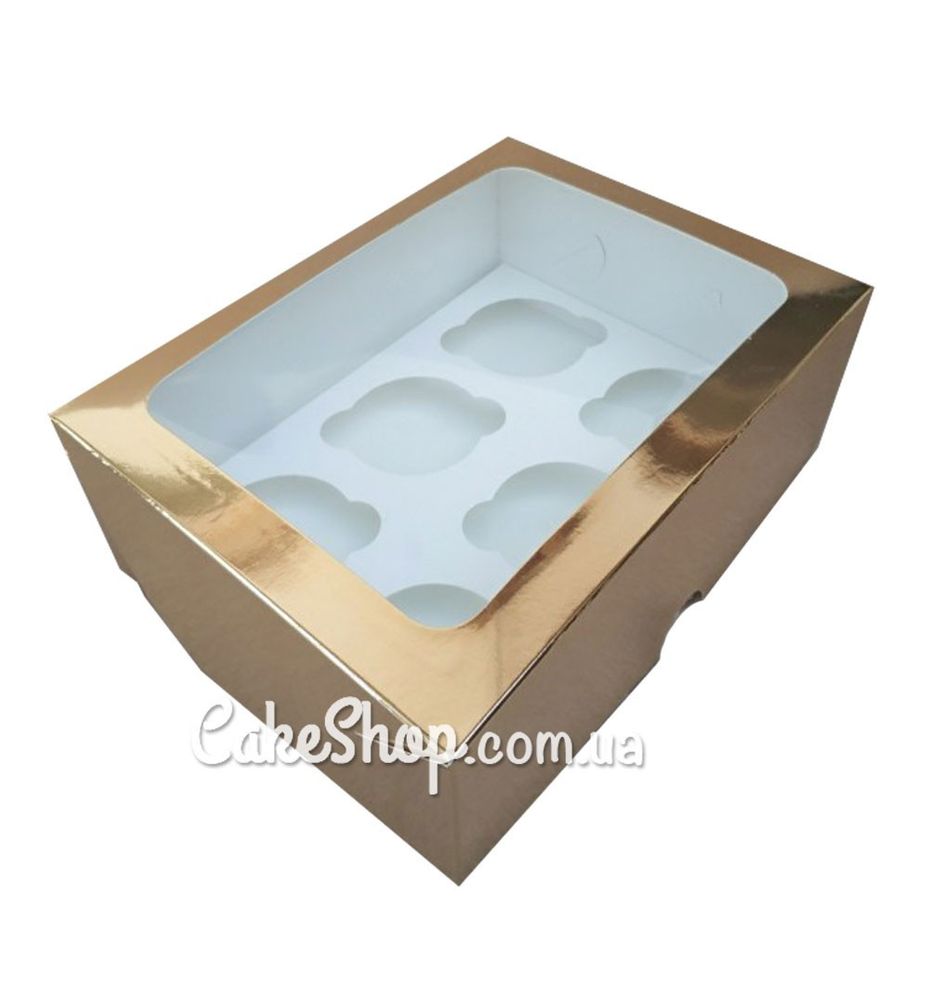 Коробка на 6 кексов с прозрачным окном Золотая, 24х18х9 см
