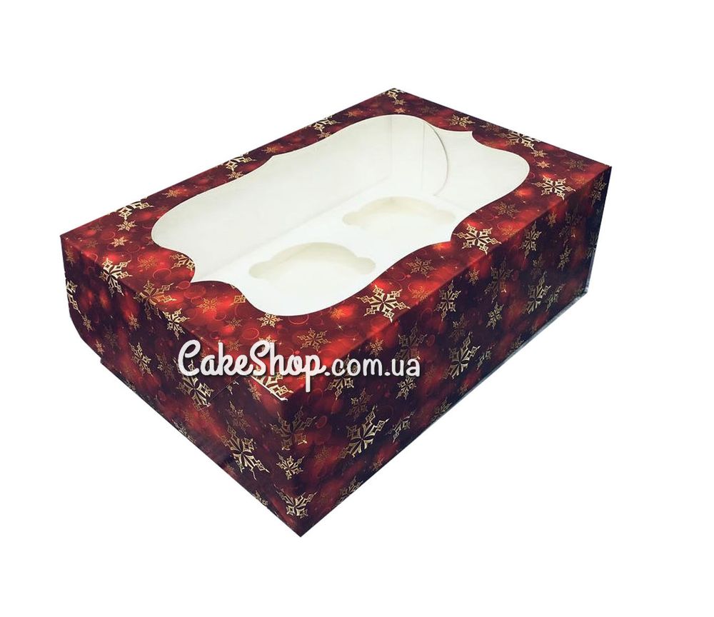 Цена на Коробка на 6 кексов с прозрачным окном Снежинка красная, 24х18х9 см равна 18 грн.