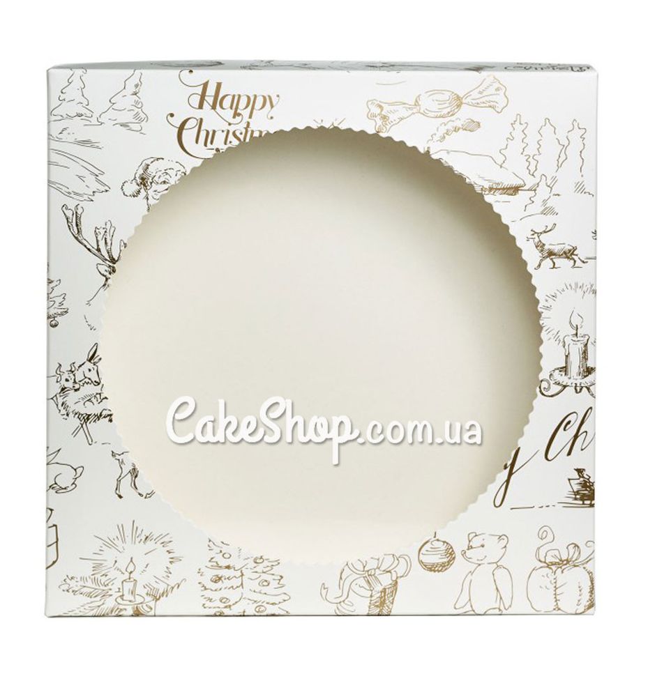 Цена на Коробка для пряников с золотой печатью Merry Christmas с окном, 20х20х3,5 см равна 18 грн.