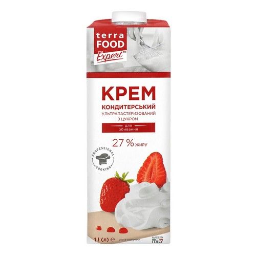 Крем Terra Food представляет собой эмульсию кремообразной консистенции. Используется для изготовления десертов, а также для украшения тортов, пирожных, кексов, маффинов и других кондитерских изделий. Этот крем очень хорошо взбивается и увеличиваются в объёме в 3,5 раза. Взбитый крем устойчив к замораживанию и не растрескивается на готовом изделии.