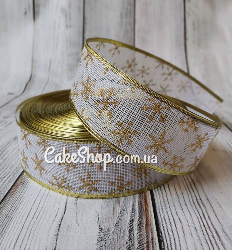 Цена на Лента для декора с проволочным краем Белая со снежинками, 5 см равна 25 грн.