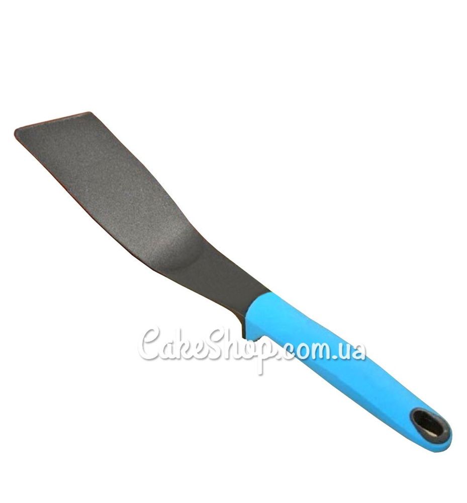 Изготовлена из нейлона. Такой материал не окисляется, не впитывает запах продуктов. Лопатка подходит для использования в посуде с антипригарным покрытием. Для более удобного хранения на ручке есть отверстие для подвешивания. Можно мыть в посудомоечной машине.