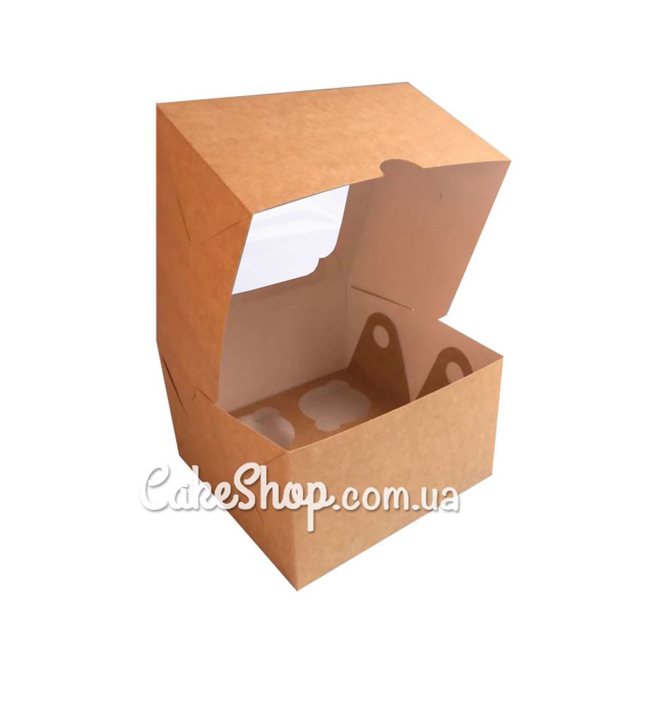 Цена на Коробка на 4 кекса с фигурным окном (2 вкладыша) Крафт, 17х17х10,5 см равна 20 грн.