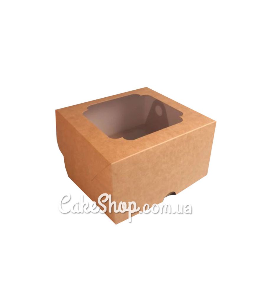 Коробка на 4 кекса с фигурным окном (2 вкладыша) Крафт, 17х17х10,5 см