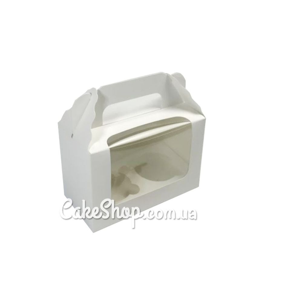 Коробка на 2 кекса с ручкой Белая, 16,5х8х10,5 см