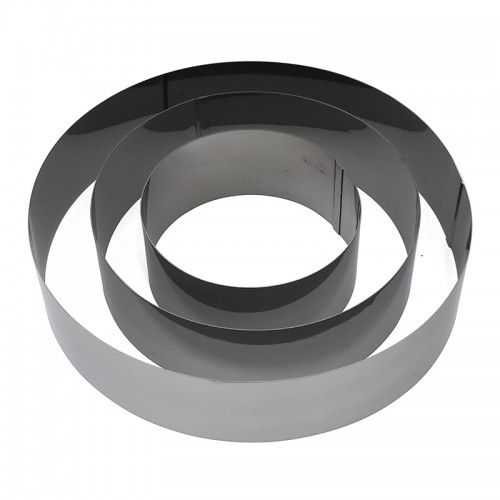 Этот набор круглых форм может быть использован, как для сборки тортов, так и для их выпечки, а также как формы для заливки желе, суфле и муссов и т.п. С помощью данных форм можно испечь коржи разных размеров круглой формы. Вам просто необходимо установить данную форму на противень, подложить бумагу для выпечки, хорошо обжать её фольгой и выпекать. Можно также использовать для формирования салатов и гарниров.
