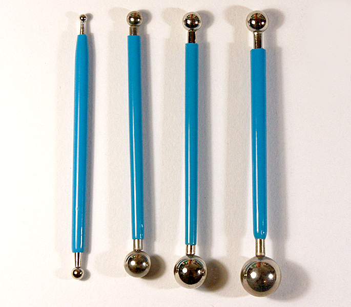 Набор инструментов состоит из четырех двусторонних стеков. Таким образом, купив один набор шариков для моделирования мастики, Вы приобретаете 8 инструментов различного диаметра.