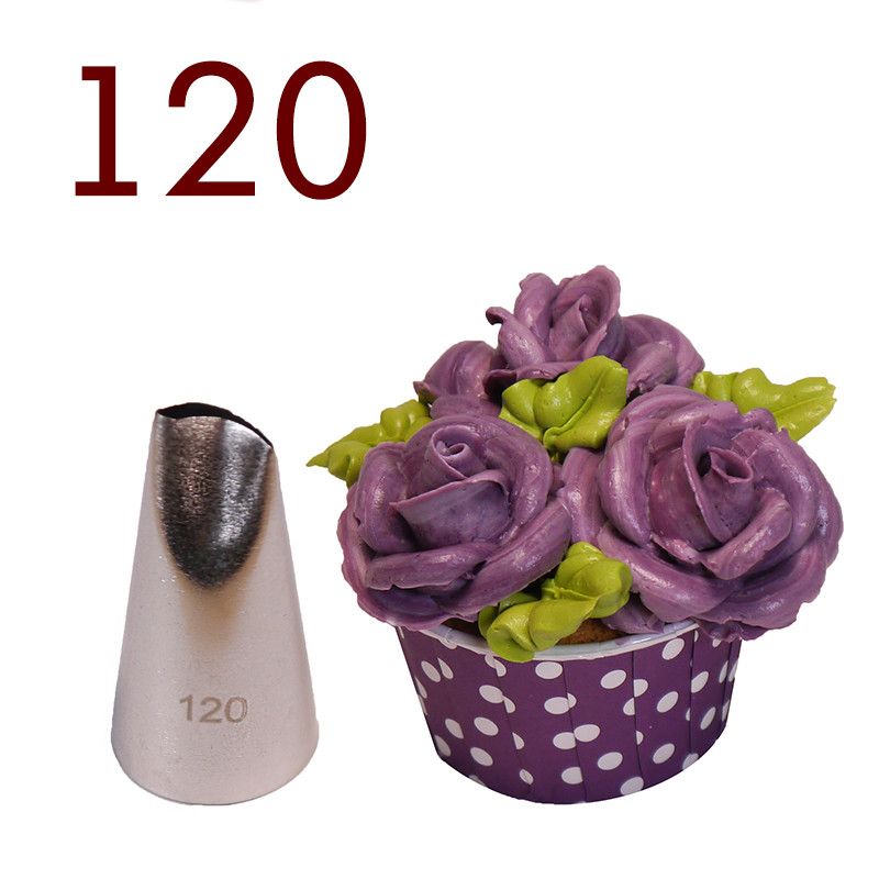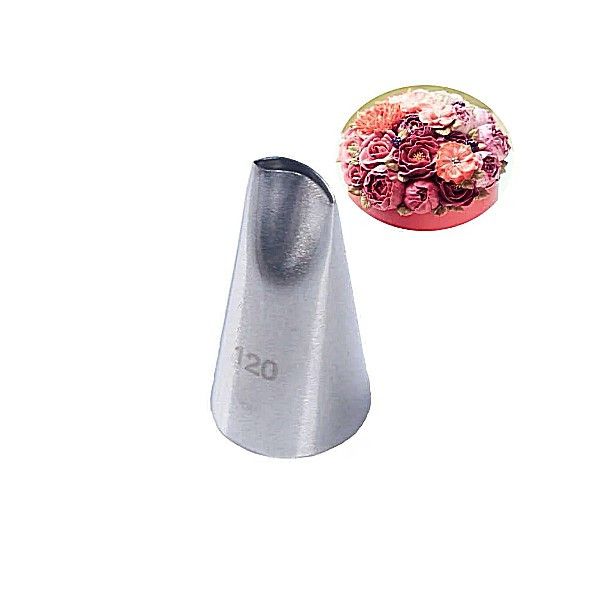 Насадка кондитерская #120 предназначена для создания реалистичных украшений в виде лепестков роз, цветов роз, драпировок, рюш, ламбрекенов, и бантов.