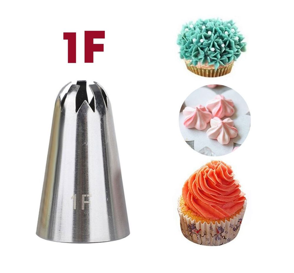 Насадка кондитерська #1F використовується для того, щоб створювати прикраси з глибоким рифленням. Саме такі насадки дозволяють прикрасити кондитерські вироби неперевершеними зірочками, рифленим бордюром і просто гарними квітами.